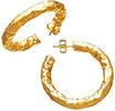 Orecchini creati completamente a mano collezione Stone misura media, Dorati sono realizzati da una lastra d’argento martellata a mano e successivamente piegata, e infine bagnata nell’oro. Elegantissimi, contemporanei, essi riflettono la luce naturale illuminando il volto.