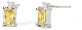 Orecchini da donna a lobo in argento rodiato con zircone Lemon taglio princess e punto luce.