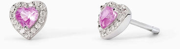 Orecchini da donna a lobo in argento rodiato a forma di cuore con tormalina sintetica e zirconi bianchi.
