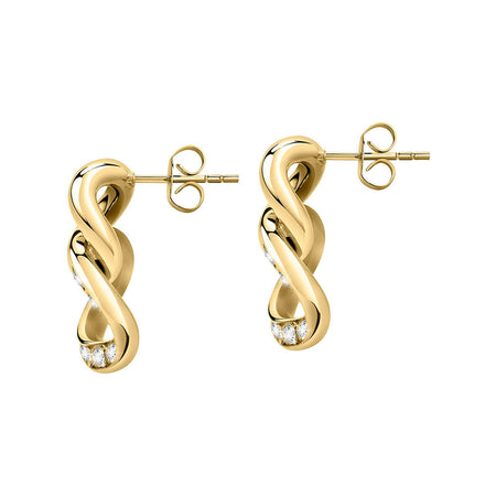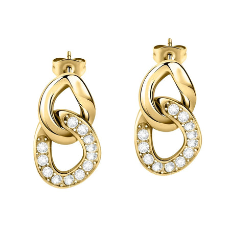 Orecchini MORELLATO da donna collezione Unica realizzati in acciaio dorato con cristalli bianchi. Lunghezza circa 4.4 cm