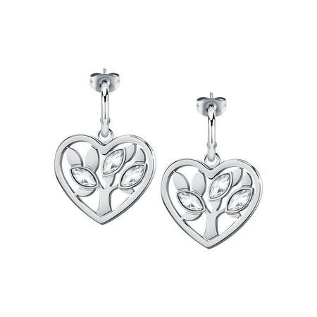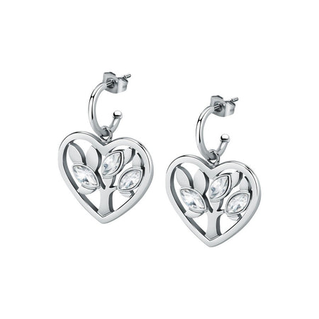 Orecchini MORELLATO da donna collezione Vita realizzati in acciaio con pendente in acciaio a forma di cuore con albero della vita impreziosito da cristalli bianchi