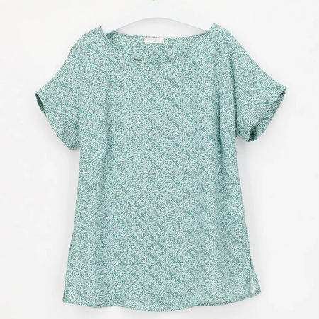 La manica corta con risvolto e lo scollo a barchetta aggiungono eleganza, mentre la stampa monocolore rende il look sofisticato e alla moda. Perfetta per ogni occasione!