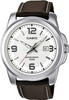 Orologio casio per uomo, MTP-1314L-7A, cinturino in pelle marrone, quadrante bianco con datario, movimento al quarzo