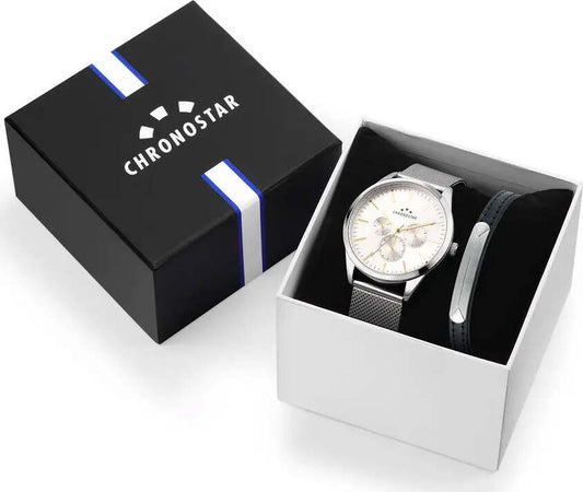 Orologio CHRONOSTAR uomo Classique multi funzione acciaio mesh. Special box con bracciale in pelle
