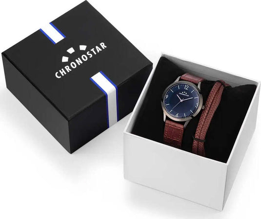 Orologio CHRONOSTAR uomo Retro tempo pelle marrone / blu