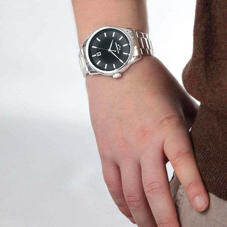 Orologio CHRONOSTAR da uomo collezione Urano con bracciale in acciao, cassa in acciaio 43 mm, quadrante nero con datario. Movimento al quarzo. Resistenza all'acqua 3 ATM
