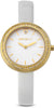 Cassa acciaio oro e strass da 32 millimetri, con il cinturino in pelle bianco lucido