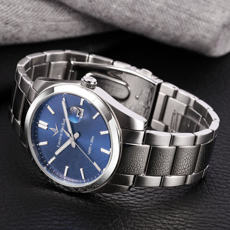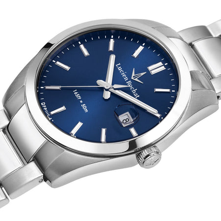 Orologio LUCIEN ROCHAT da uomo collezione Leman con bracciale in acciaio, cassa in acciaio 41 mm, quadrante blu con datario. Movimento al quarzo. Resistenza all'acqua 50 metri