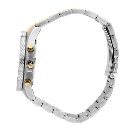 Orologio MASERATI da uomo collezione Sfida con bracciale in acciaio bicolore, cassa in acciaio 44 mm, quadrante blu con cronografo e datario, movimento al quarzo. Resistenza all'acqua 100 metri. Collezione Limited Edition solo online