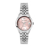 Philip Watch R8253597622 è un raffinato orologio solo tempo da donna della collezione Caribe Lady. Il movimento al quarzo Swiss Made garantisce precisione, mentre la cassa da 31 mm in acciaio inox con finitura lucida e spessore di 9,15 mm assicura eleganza e comfort. Il quadrante analogico rosa light è arricchito da numeri romani, datario con lente d’ingrandimento a ore 3 e lancette con inserti luminescenti per una perfetta leggibilità anche al buio.