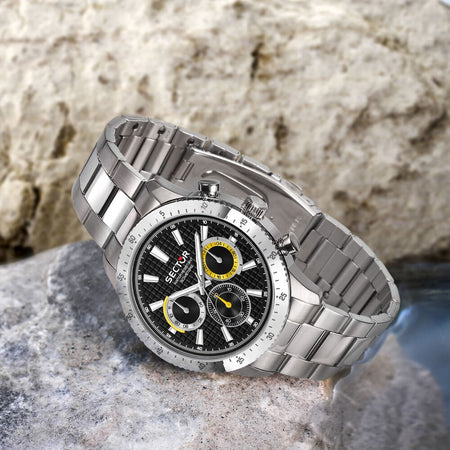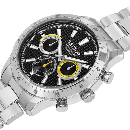 Orologio SECTOR da uomo collezione 270 con bracciale in acciaio, cassa in acciaio 45 mm, quadrante nero con multi funzione: movimento al quarzo