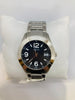 Orologio da uomo vintage Alfex in acciaio anallergico, movimento al quarzo, quadrante nero, datario ore 3, cinturino con finitura satinata e lucida, chiusura deployante. Misura cassa 40 mm.