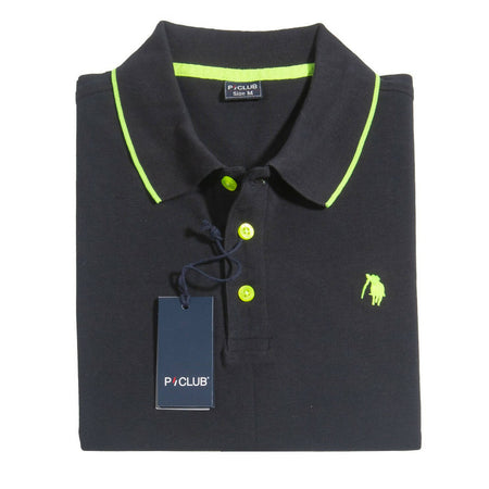 Polo Uomo P Club Maglia Polo Uomo Maniche Corte Colore Nero Con Striscia Verde Art.22800