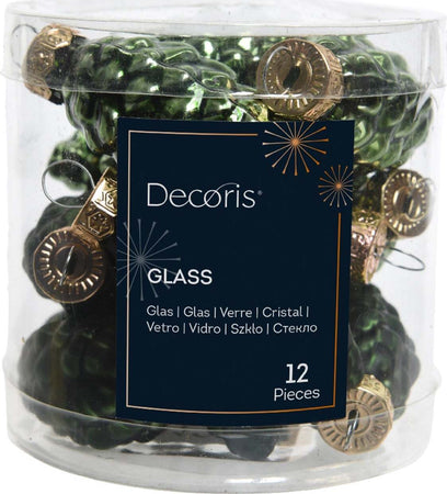 Palline a forma di pigna in vetro per albero verde pino, confezione da 12 pezzi