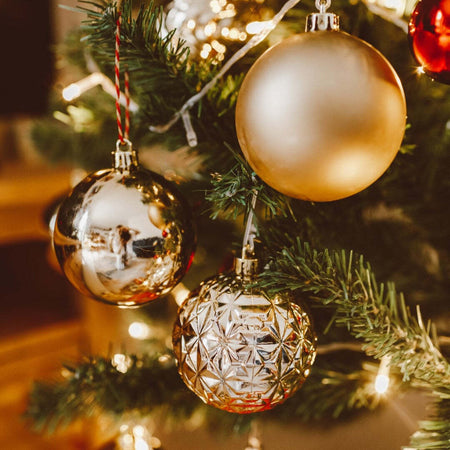 Palline per albero di Natale decorato, in Foam, color Champagne, Glitterate, da Ø 8 cm, 12 pezzi