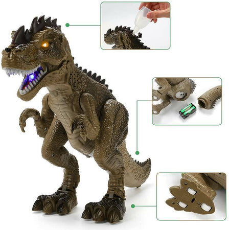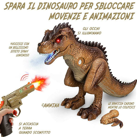 Palyset Dinosauro T-Rex Camminante + Pistola Giocattolo Bambini Luci Suoni Fumo