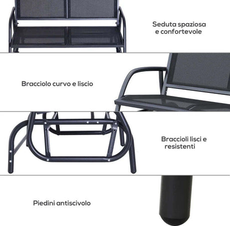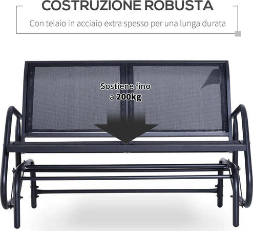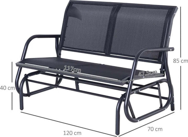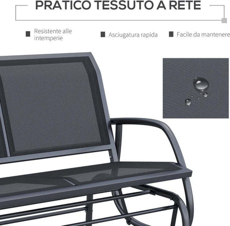 Panchina a Dondolo da Giardino a 2 Posti in Metallo e Tessuto a Rete Traspirante, 120x70x85cm, Nero 01-0893