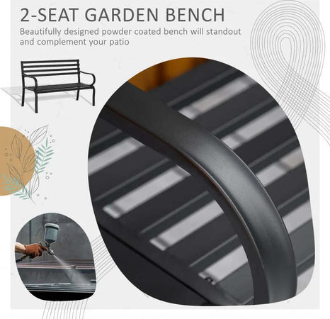Panchina da Esterno in Metallo Impermeabile Nero, Panca da Giardino a due Posti, 127 x 62 x 82cm - Max 240kg 84B-010