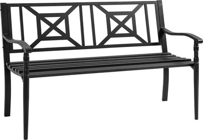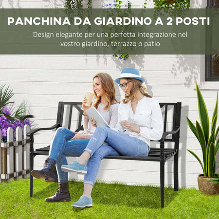 Panchina da Giardino in Acciaio a 2 Posti con Schienale Alto e Braccioli, 128x62.5x81.5 cm, Nero 84B-749V01