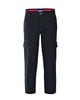 Pantalone da lavoro con elastico ai fianchi interno regolabile, chiusura alla patta con cerniera e bottone in cintura, travette varie di colore rosso. Due tasconi laterali con soffietto centrale chiusi con aletta e punti velcro, due tasche anteriori interne con cucitura di colore rosso, una tasca posteriore applicata a destra chiusa con aletta e punti velcro, una tasca posteriore applicata a sinistra chiusa con bottone tradizionale. 100 % cotone twill. Peso 330 g/m² I^ Categoria per rischi minimi