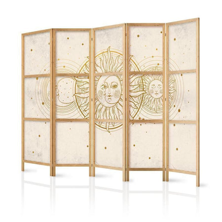 Paravento giapponese - Golden Sun and Moon - Artistic Illustration in Retro Style