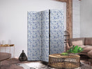 Paravento - Illustration in Vintage Style - Blue Flowers on a White Background