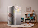 Paravento - Joyful Sky - Yellow Cheerful Stars with a Rainbow Against the Phases of the Moon - in the Sky Colored Light