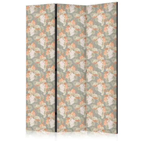 Paravento - Little Bouquets - Exotic Flowers and Leaves on a Gray-Green Background