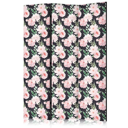 Paravento - Peonies - Pink Flowers and Green Leaves on a Graphite Background