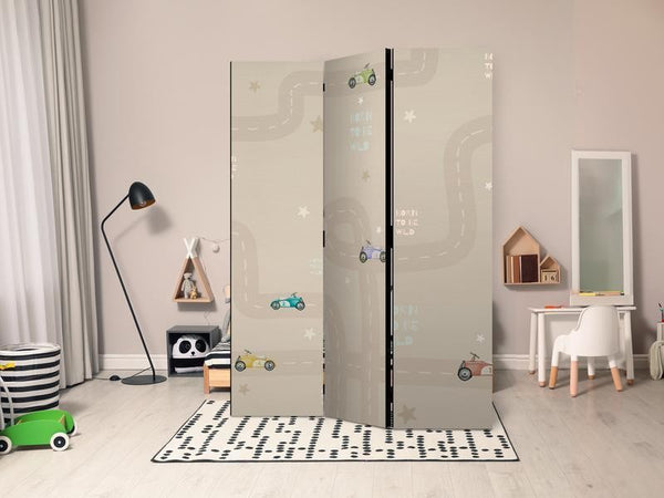 Paravento - Race - Colorful Cars on a Road on a Beige Background with Stars