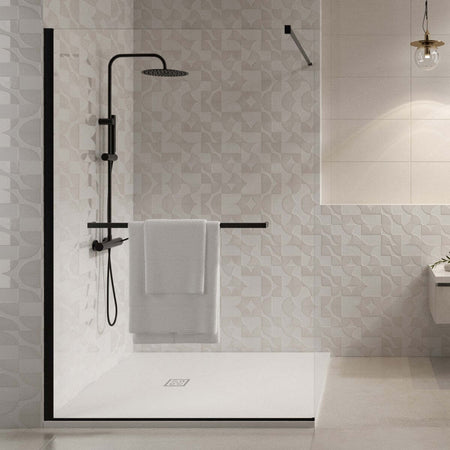 Parete Doccia Walkin Trasparente Anticalcare profili neri e porta salviette 8mm H195 Noire