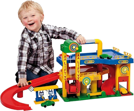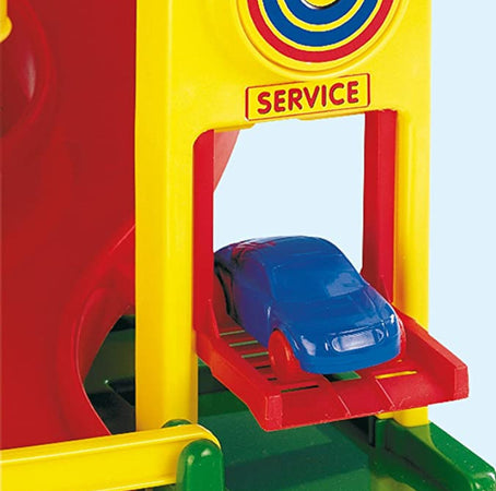 Parl Auto per Bambini Polesie Giocattoli - Garage Con Auto Incluso Car Service, 5 Piani, 19x16x 57cm Doppia Rampa D'uscita, Giocattolo per Bambini a Partire Dai 3 Anni
