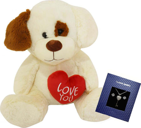 Peluche con cuore ti amo dim. 35 cm + cofanetto con orecchini punti luce e catenina con ciondolo a cuore