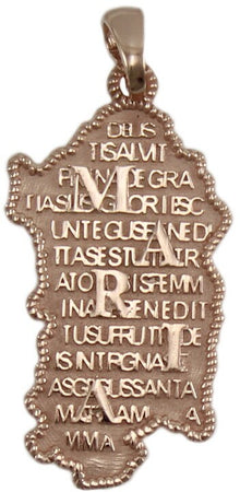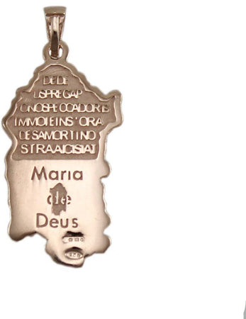 Pendente Sardegna in Argento Rosa Con Preghiera Ave Maria in Sardo in Rilievo Ciondolo Pendente 16x30 Mm