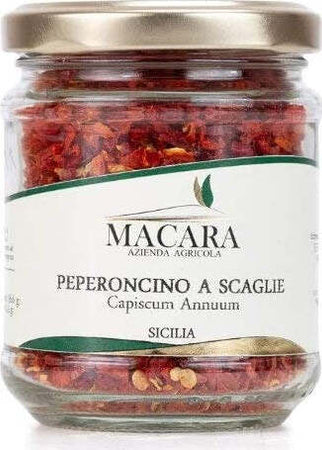 Peperoncino della varietà Cayenna 100% naturale e siciliano dal profumo particolarmente intenso e piccante. Il Peperoncino di Sicilia prodotto dall’Azienda Macara è raccolto e lavorato a mano, essiccato al naturale, sgranato e setacciato con un antico sistema di lavorazione che ne preserva sapore, profumo e colore. La lavorazione manuale e l’essiccazione lenta e naturale preservano anche le proprietà di questa spezia afrodisiaca, ricca di vitamine A, B, C, E, K, potassio, calcio, caratenoidi, bioflavonoidi. Ingrediente immancabile e insostituibile in cucina, il peperoncino dà quella piccantezza piacevole alle pietanze e le rende più digeribili. Oltre ad avere proprietà digestive e antinfiammatorie, se consumato regolarmente, il peperoncino migliora la circolazione del sangue.