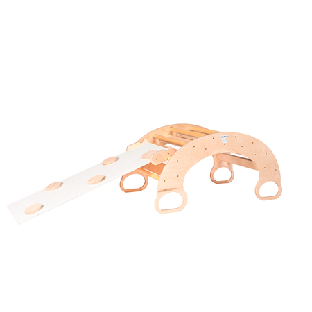 Triangolo + Dondolo + Cubo + Scivolo/Arrampicata + Scivolo per il Percorso Fantastici 4! Questo modello disegnato da Mami Kids presenta quattro strutture che si integrano alla perfezione: il Triangolo di Pikler, il Cubo di Pikler, il Dondolo e due rampe, entrambe da un lato scivolo e dall’altro arrampicata. Tutto incluso.La struttura gli permette di svolgere diverse attività motorie. Le pincipali sono: passare dalla posizione seduta a quella in piedi, arrampicarsi, scivolare, salire e scendere, scavalcare, strisciare, sviluppare l’equilibrio. Aiuta, inoltre, a rafforzare l’autostima del bambino. Il concentrarsi su un’attività di movimento come questa, favorisce anche l’uso di una modalità di gioco semplice ed essenziale, priva di suoni e lucine che distraggono il bambino.Dimensioni Triangolo: 60 (altezza) x 50 (larghezza) x 60 (profondità) cmDimensioni Cubo: 45 x 45 x 45 cmDimensione Dondolo: 80 (lunghezza) x 48 (larghezza) x 50 (altezza) cmDimensioni degli scivoli: 85 x 34 cmIncluso: viti ed istruzioni per il montaggio