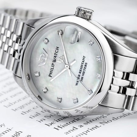 Philip Watch Caribe R8253597619 è un elegante orologio da donna in acciaio con diamanti naturali h/si sul quadrante madreperla.