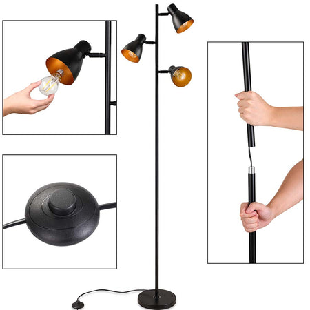 Piantana Alta 3Luci Lampada Salotto Moderna in Metallo Nero Oro 165cm Casa Ufficio