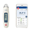 - Memoria: sono disponibili in totale 25 misurazioni in memoria per la temperatura corporea. Una volta acceso il dispositivo, premere il tasto “ON/MEM” per visualizzare le temperature memorizzate. I dati archiviati nella memoria del termometro non vengono inviati all'applicazione.
