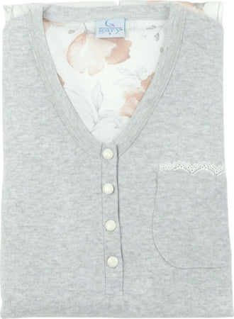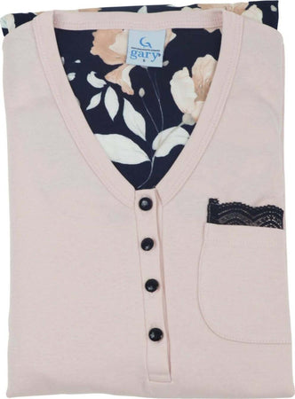 Pigiama Due Pezzi Donna Interlock Gary Pigiama Lungo in Caldo Cotone Maglia Maniche Lunghe Tinta Unita E Pantalone Lungo Fantasia Floreale