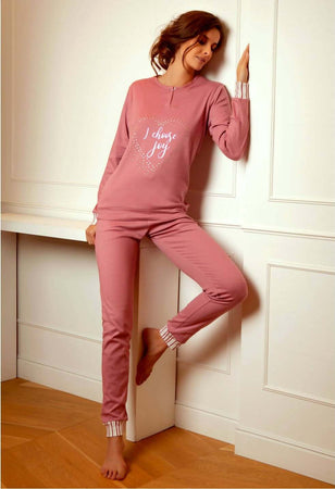 Pigiama Donna L'altra Cotonella Interlok Pigiama Due Pezzi Made in Italy Con Scritta E Cuore Art. Ddc460000