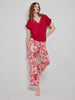 Pigiama Gisela Primavera/Estate Satinato con Pizzo e Stampa Corallo