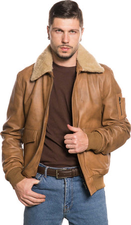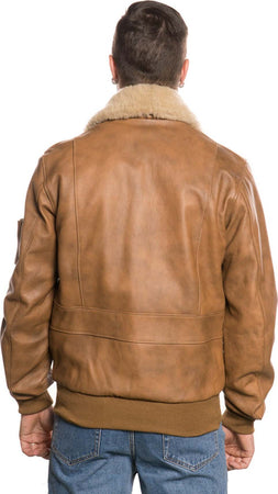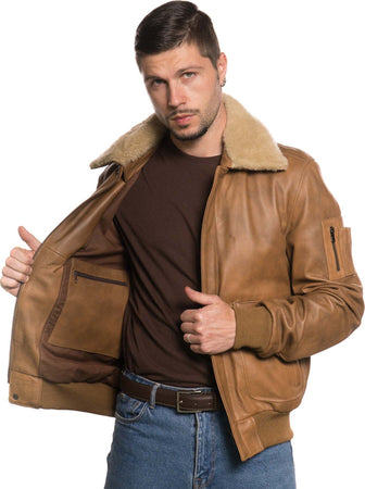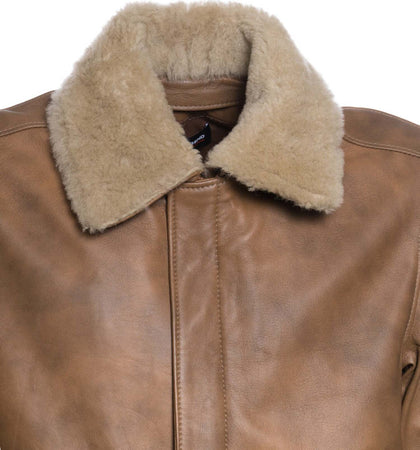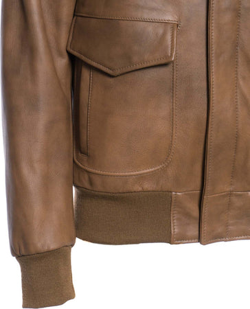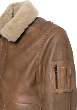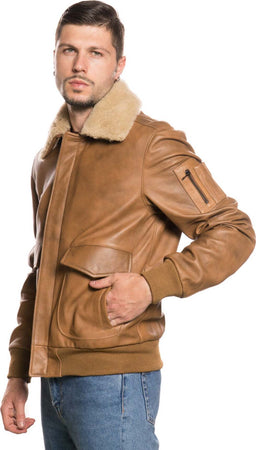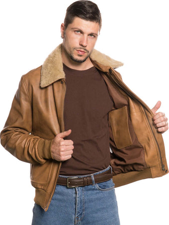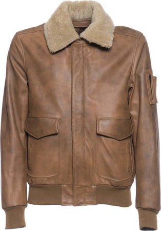 Pilota - Bomber Uomo Cuoio in vera pelle con collo in vero montone Beige