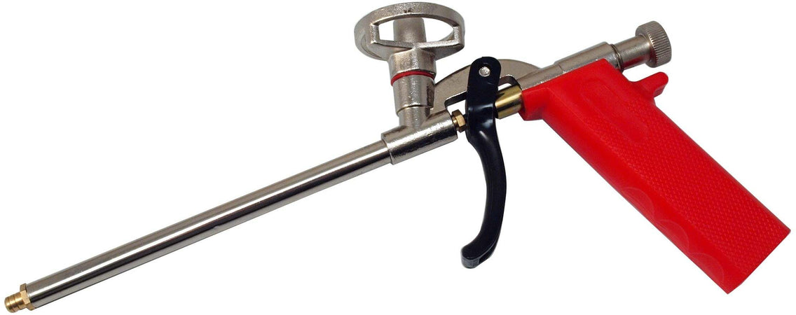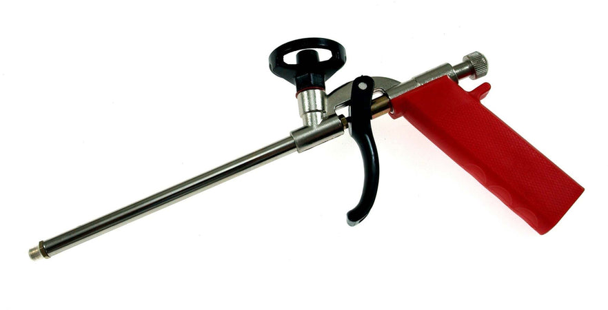 Una robusta pistola per schiuma, progettata per l'uso professionale nei lavori di costruzione, assemblaggio, isolamento e finitura.