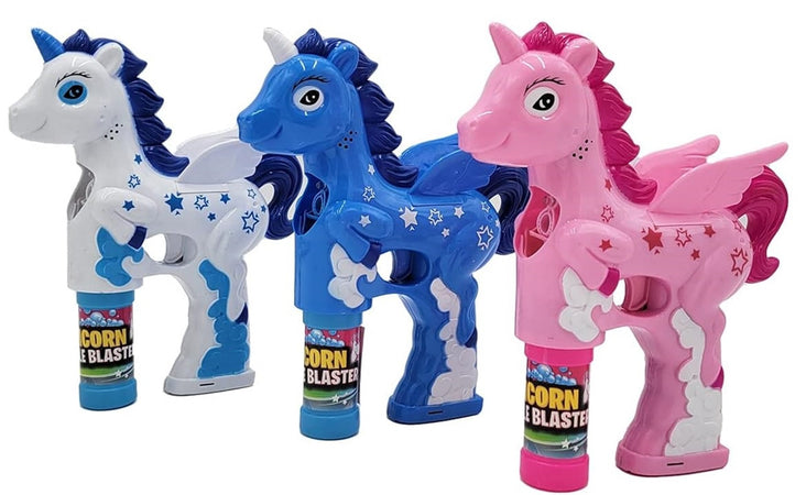 Pistola Spara Bolle Unicorno Con Luci Suoni 2 Flaconi Di Ricarica 50ml 3 Colori 6726067