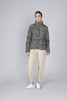 Piumino corto stampa chervon con cintura logata