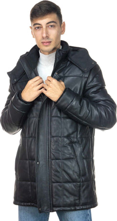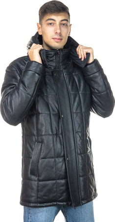 Piumino Lungo Marek - Piumino Uomo Nero in vera pelle