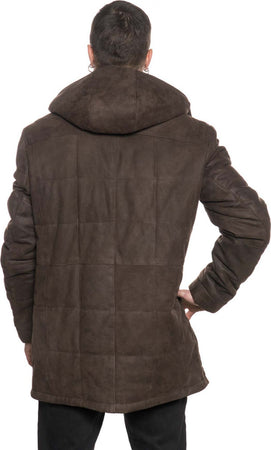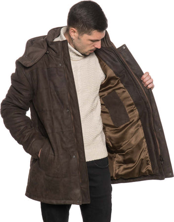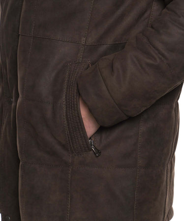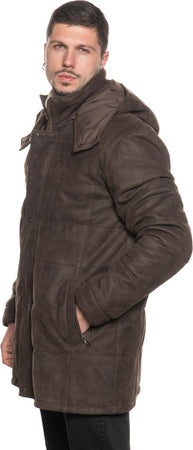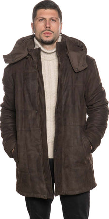 Piumino Lungo Marek - Piumino Uomo Testa di Moro in vera pelle Nabuk