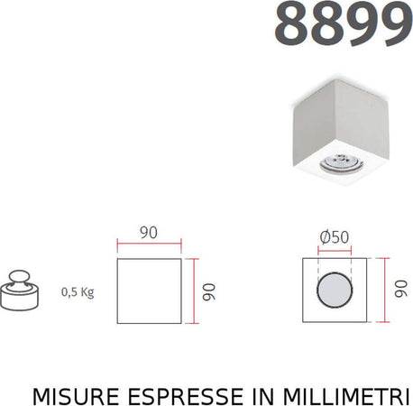 Lampada da soffitto quadrata da personalizzare con attacco GU10 LED 10W da interni