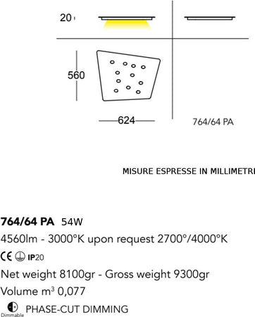 Plafoniera moderna Cattaneo illuminazione FUORISQUADRA 764 64PA 54W LED lampada soffitto dimmerabile metallo 4560LM 3000°K IP20